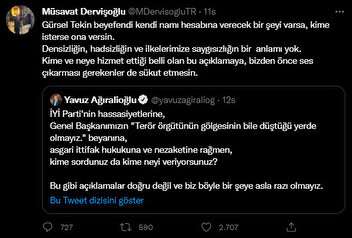 “Gürsel Tekin beyefendi kendi namı hesabına verecek bir şeyi varsa, kime isterse ona versin. Densizliğin, hadsizliğin ve ilkelerimize saygısızlığın bir anlamı yok.