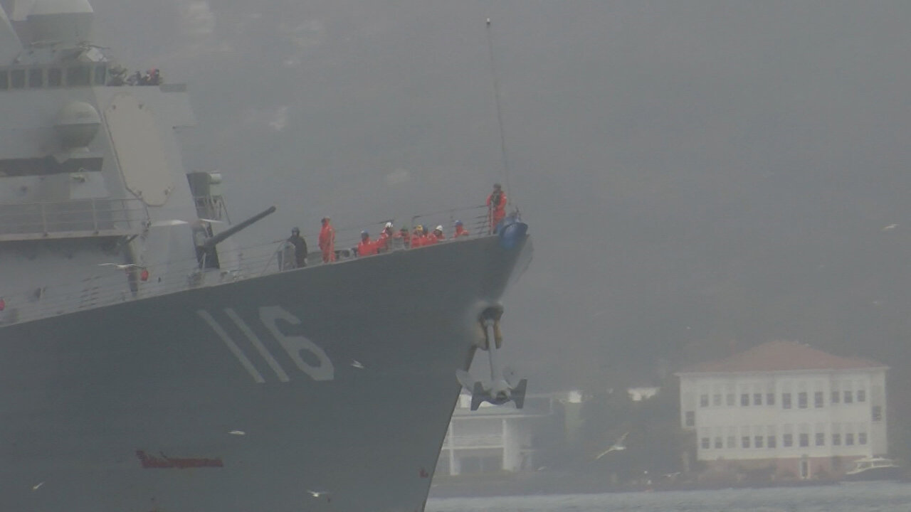 ABD savaş gemisi İstanbul Boğazı'ndan geçerek Marmara Denizi'ne açıldı. Savaş gemisinin geçişine sahil güvenlik botları da eşlik etti.