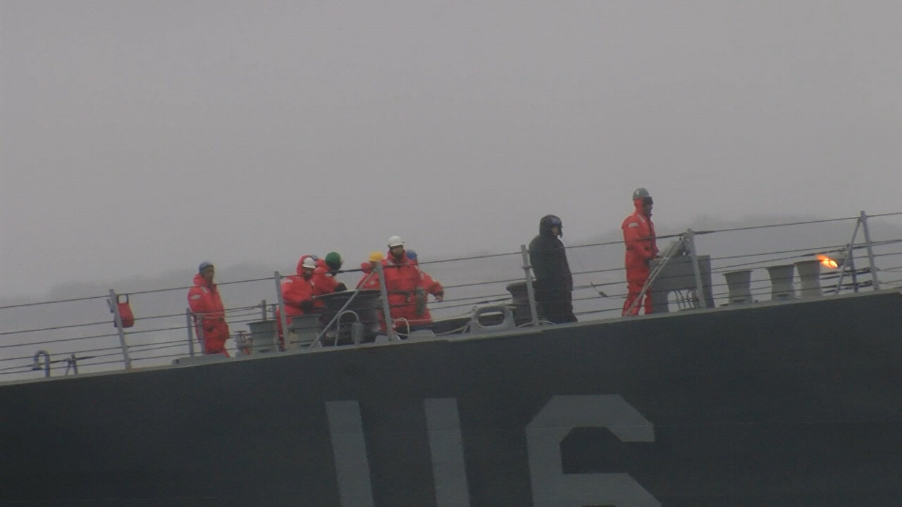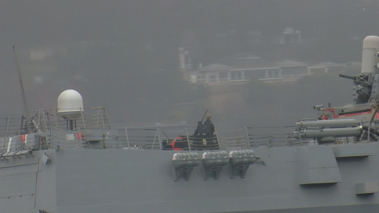 Yaklaşık bir saatte Fatih Sultan Mehmet Köprüsü altına ulaşan gemide çok sayıda askerin ağır silahlar ile nöbet tuttuğu görüldü.