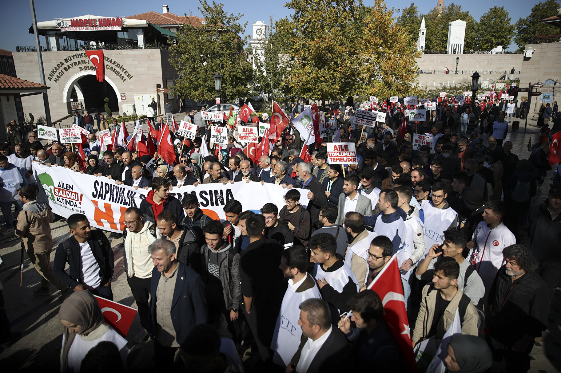 Ankara'da çok sayıda sivil toplum kuruluşunun desteğiyle düzenlenen etkinlik kapsamında, Hacı Bayram Veli Camisi'nin önünde toplanan ve "Ailen Saldırı Altında", "Cinsiyetsiz Toplum Projesine Dur De", "Sapkınlık Normalleştirilemez", "Çocuklarını Küresel Çetelerden Koru" yazılı dövizler taşıyan kalabalık, Ulus Atatürk Heykeli'ne kadar yürüdü.