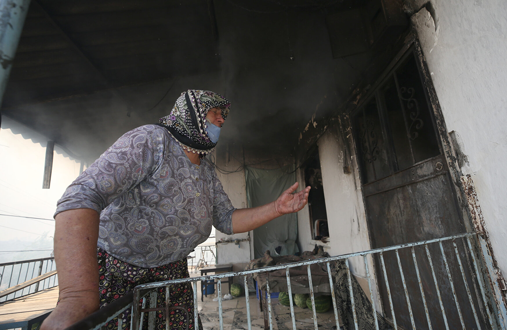 Antalya'nın Manavgat ilçesindeki orman yangınında evi kullanılamaz hale gelen ve tedavisi için biriktirdiği parasını da kaybeden kadın, yaşananları çaresizce izledi.