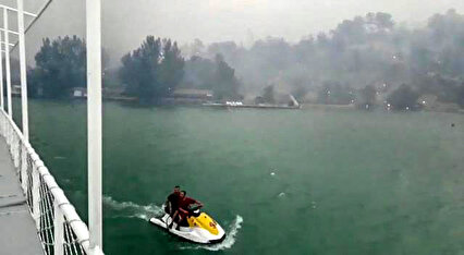 Antalya'nın Manavgat ilçesinde yangının etraflarını sarması nedeniyle 14 kişi, gezi teknesiyle Manavgat Baraj Gölü'ne açıldı. Etraftaki tüm ormanlık alanlar yanarken, dumanlar arasında kalan 14 kişi, tekneyle 6 saat boyunca gölde dolaştı.