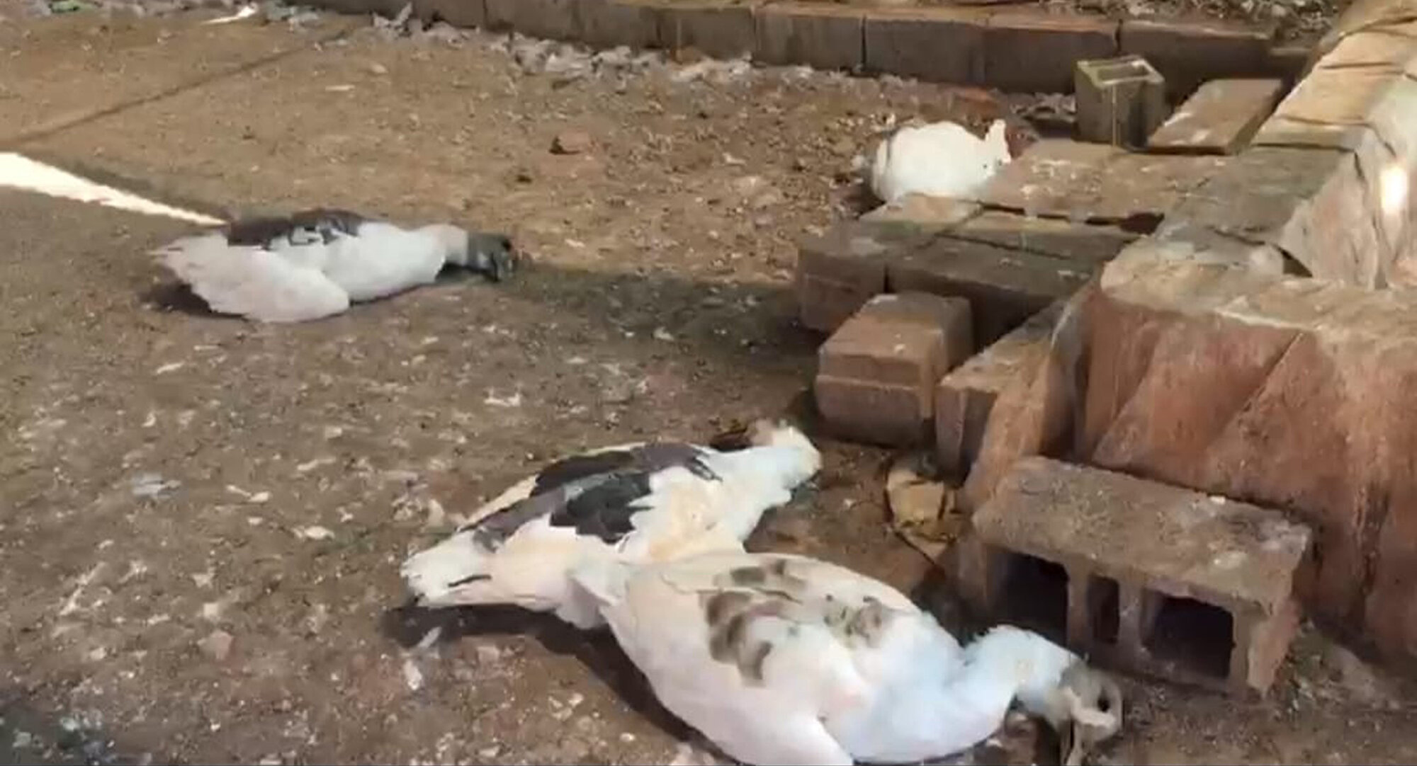 Kazların tamamı, tavukların ise büyük kısmı sıcak havada açlık ve susuzluktan öldü.
