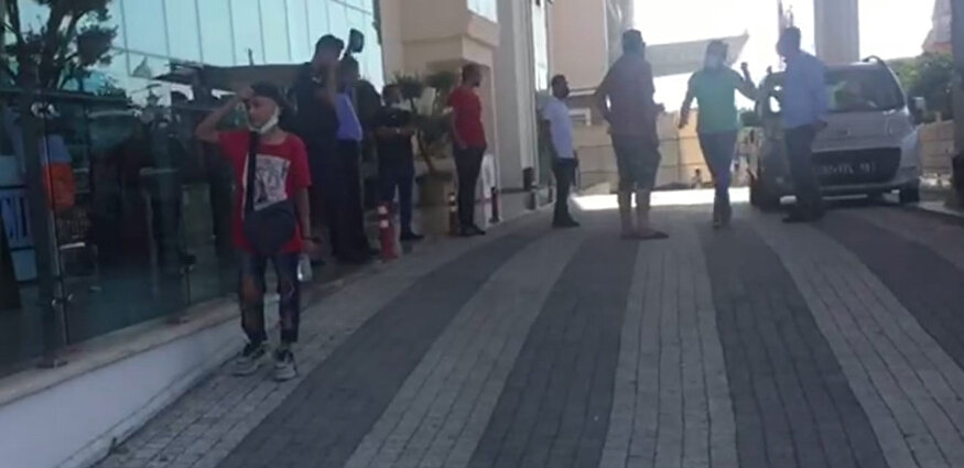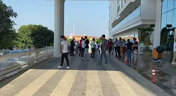 Görüntüyü çeken kadın tatilci, “Otel burası arkadaşlar mağdur olduk, dolandırıldık. Görüldüğü üzere çocuklar falan perişan herkes. 1 yaşında çocuklar rezil oluyor. Gelen herkes geri dönüyor” diye konuştu. Görüntülere çoğunlukla çocuklu ailelerin yansıdığı görülürken, yere oturan bir kadının ayağında bebeğini salladığı anlarda an be an yansıdı.