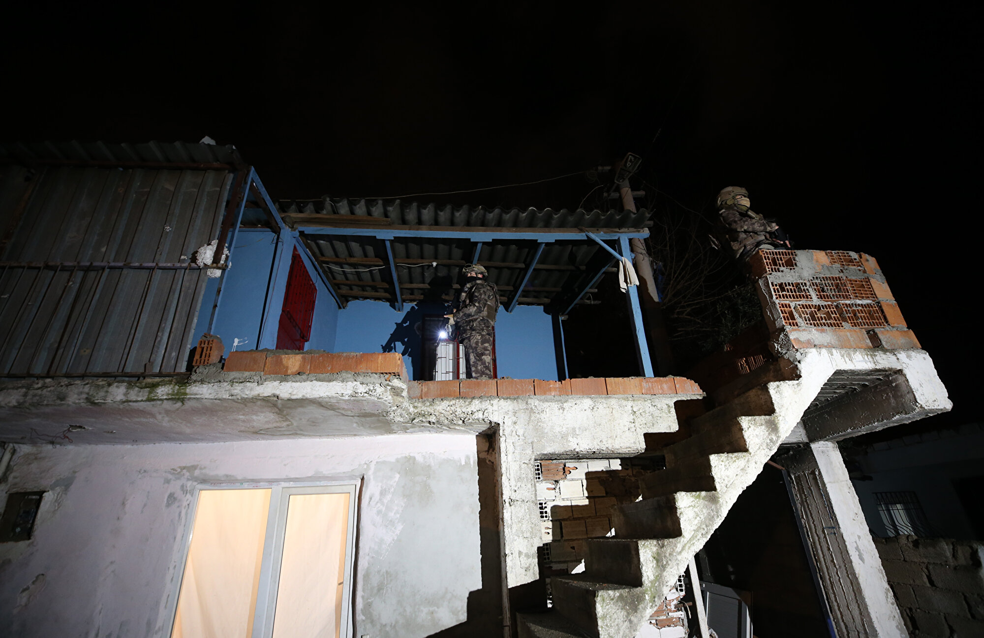 Özel harekat ekipleri ve narkotik dedektör köpeklerinin de katıldığı operasyonda polis helikopteri de havadan destek verdi.