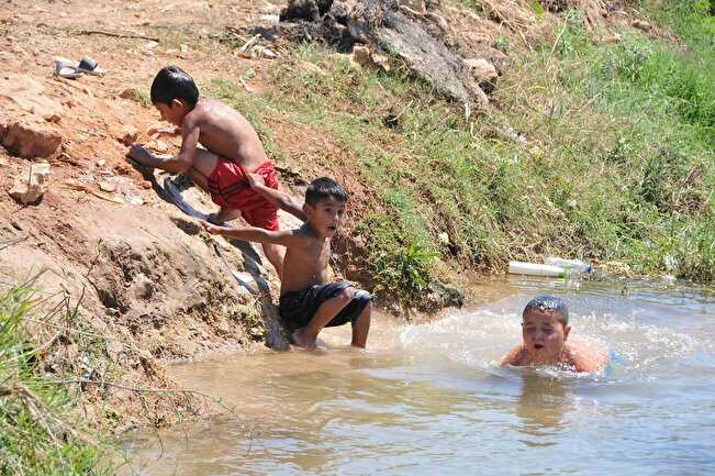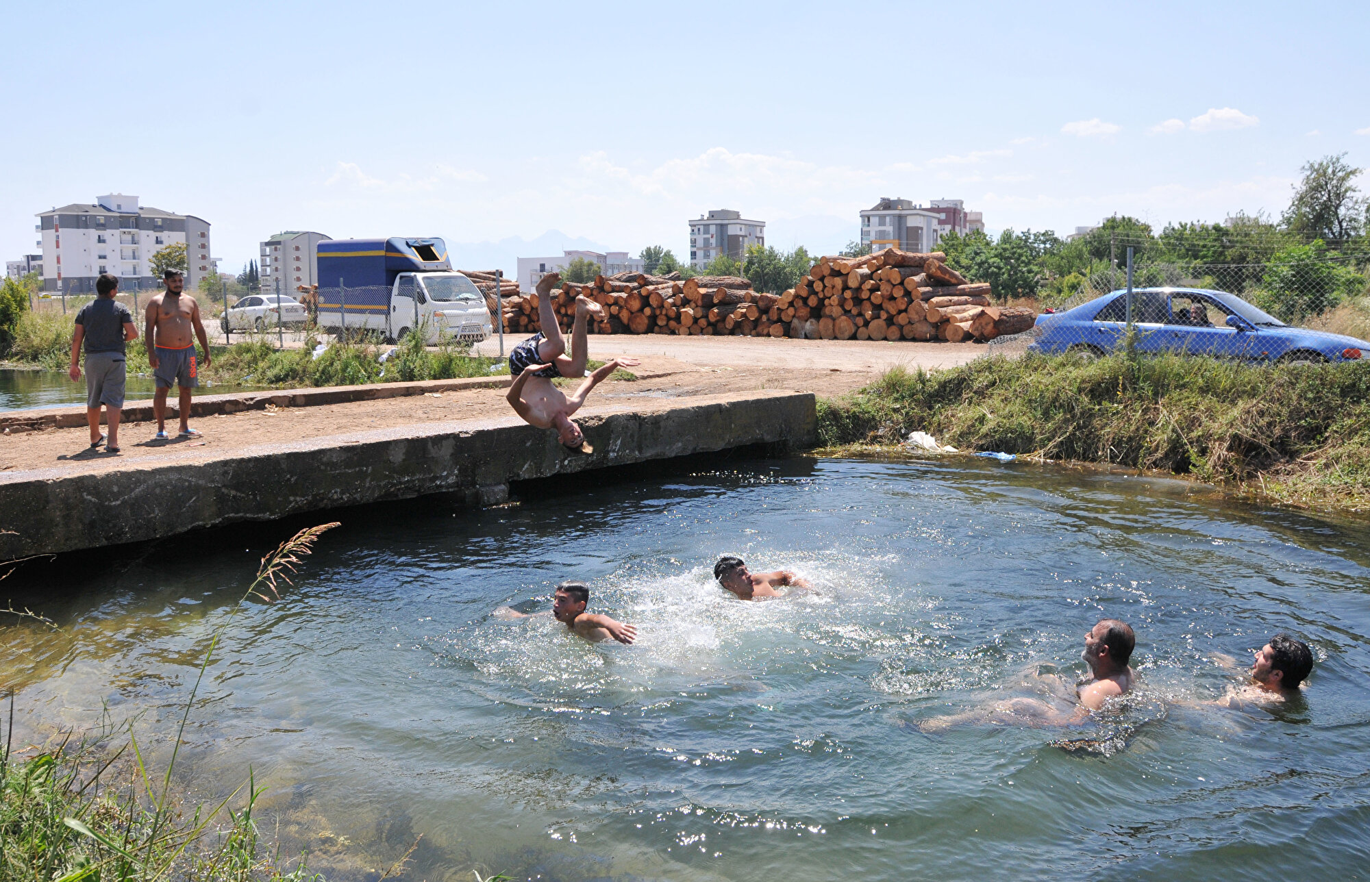 Hava sıcaklığının 34, hissedilenin ise 38 derece olduğu Antalya'da yetişkinler ve çocuklar, serinlemek için denizin yanı sıra, su kanallarını tercih ediyor. Kepez ilçesi Göksu Mahallesi'nde tehlikeli ve yasak olduğu halde sulama kanallarına girenler, ilginç görüntüler oluşturuyor.