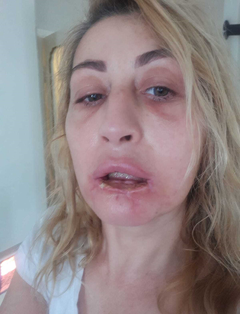 - Dolgudan sonra dudağındaki ana damarın tıkanması sonucu dokuların tamamen işlevini yitirdiğini anlatan Uzunoğlu, dudağını kaybettiğini, çok acılar çektiğini ifade etti.