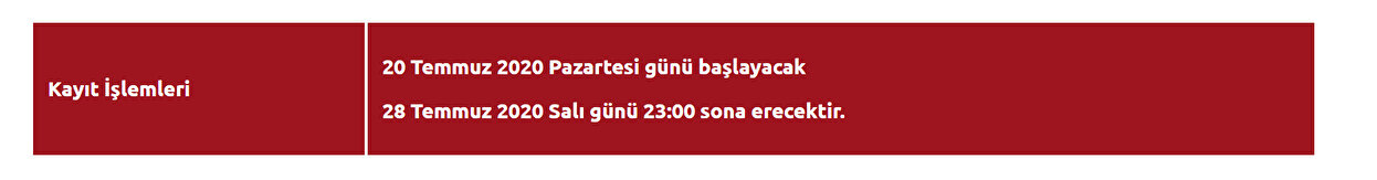Kayıt işlemlerinin 20 Temmuz Pazartesi günü başlayacağı ve 28 Temmuz Salı günü saat 23.00'te sona ereceği belirtilen açıklamada şu ifadelere yer verildi: