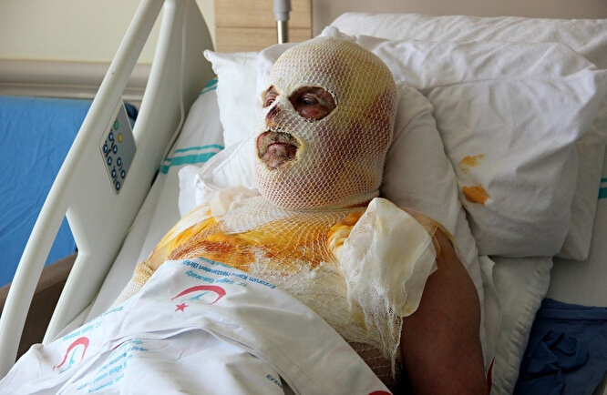 - Çevredekilerin 112 Acil Sağlık ekibine haber vermesi üzerine olay yerine gelen ambulansla Kadim Ercan, Ardahan Devlet Hastanesine kaldırıldı. Burada yapılan ilk müdahalenin ardından Ercan, Erzurum Şehir Hastanesi’ne sevk edilerek tedavi altına alındı. Kadim Ercan’ın kafa, boyun, göğüs, kol ve ellerinde ikinci dereceden yanıklar oluştuğu belirtildi.