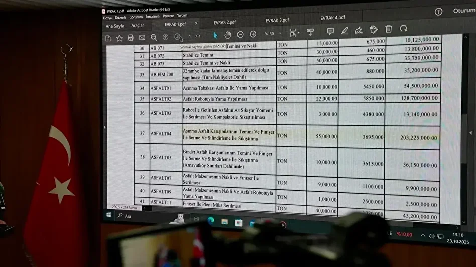 CHP Genel Başkanı Özgür Özel’in Asfalt alımıyla ilgili yolsuzluk yapıldığını belirterek suçladığı Başkan Candaroğlu, “Kim, nereden 6.500 TL’yi uydurmuş çok merak ediyorum. Biz bu asfaltı 2.600 TL’ye aldık, serimi, nakliyesi, her şeyi dahil 3.695 TL’ye mal ettik. İşte belgesi burada” diyen Candaroğlu, İstanbul Büyükşehir Belediyesinin 2025 yılı boyunca Arnavutköy’e bir metre asfalt dahi dökmediğini vurguladı.