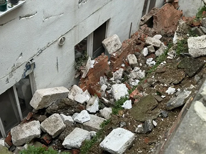 Arnavutköy'de, iki bina arasında bulunan istinat duvarının çökmesi nedeniyle bir binada hasar oluştu.