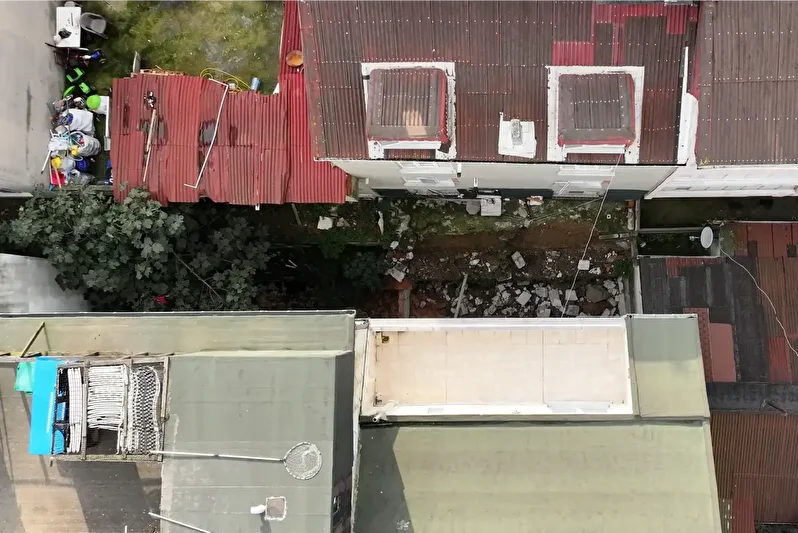 Arnavutköy'de, iki bina arasında bulunan istinat duvarının çökmesi nedeniyle bir binada hasar oluştu. Zabıta ekipleri çevrede önlem alırken, incelemelerin ardından hasar oluşan binada oturanlar tedbir amaçlı tahliye edildi.