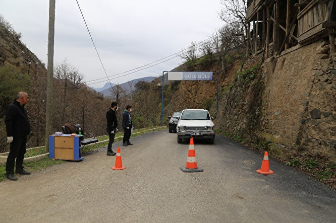 Artvin merkeze bağlı Sarıbudak köyünde yaşayan vatandaşları korumak için muhtarlığının aldığı kararla köy girişi dubalarla kapatılıp gelenler kayıt altına alınıyor. Gelen araçları durdurup içindekilerin ateşini ölçen gençler 14 gün kuralını ve sosyal mesafeyi hatırlatarak gerekli bilgileri aktarıyor.
