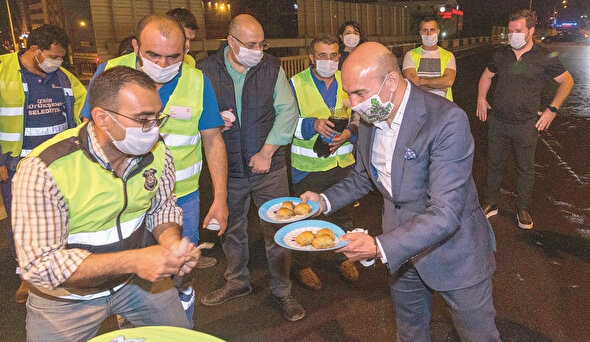 İzmir Büyükşehir Belediye Başkanı Tunç Soyer, gece 23.00’te normalde trafiğe kapatılamayan ana arterlerde asfalt atan işçileri ziyaret ederek baklava ikram etti. Soyer, “Sokağa çıkma yasağının uygulandığı günleri İzmirlilere hizmet için değerlendirdik” dedi.