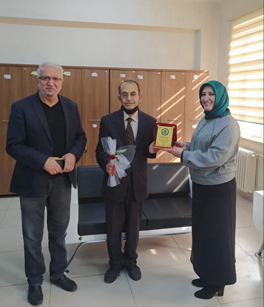 Müslüm Boran'a (ortada) öğretmenler tarafından plaket verilmişti.