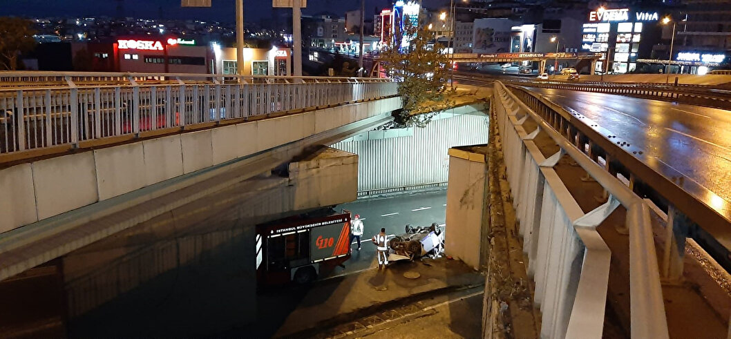 Avcılar'da sürücüsünün direksiyon hakimiyetini kaybetmesi sonucu kontrolden çıkan otomobil, D-100 Karayolu ile yan yol arasındaki viyadükten aşağıya uçtu. Kazada 3 kişi yaralandı.