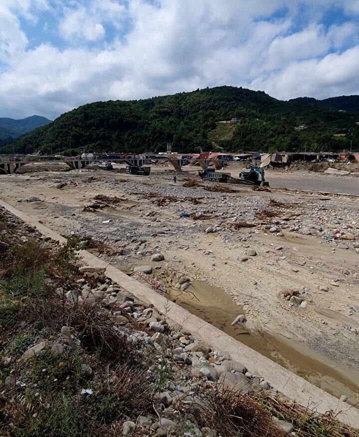 Karadeniz'de sel felaketinin yaşandığı şehirlerden biri olan Sinop'ta, işletme depolarında bulunan binlerce ton tomruk, sel sularıyla sürüklenmiş, yıkıma neden olmuştu.