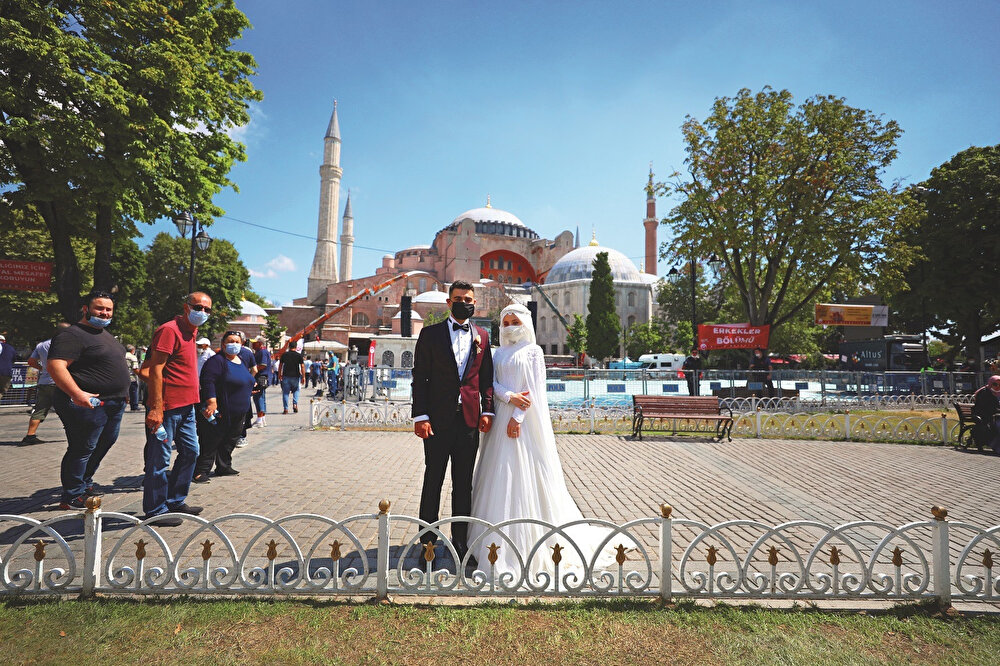 Sabahın erken saatlerinden itibaren vatandaşların yoğun ilgi gösterdiği camiye bir çiftte düğünleri öncesi gelinlik ve damatlıkla gelerek dua etti. Dünyaevine girmeden önce camiyi ziyarete gelen damat İdris Yılmaz ve gelin Hilal Uzun da camiye girip dua ettiklerini ve hatıra fotoğrafı çektirdiklerini söyledi. Hilal Uzun, “Çok mutluyuz. Dualar ettik” dedi.