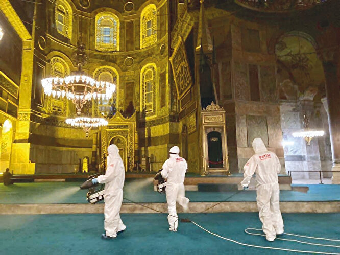 Ziyaretçi akınına uğrayan caminin halıları da titizlikle temizleniyor. Koronavirüs salgınına karşı camide her saat başı belediye ekipleri temas edilen ve temas edilmeyen her noktaya dezenfektan sıkıyor. Fatih Belediyesi tarafından yapılan dezenfekte çalışmasının her gün düzenli olarak devam edeceği öğrenildi.