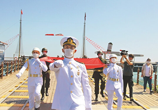 Samsun’da, kutlamalar Atatürk Anıtı’nda başladı. Buradaki törenin ardından ilk adımın atıldığı yeri temsil eden Tütün İskelesi’ndeki tören alanına geçildi. Askerler, 19 Mayıs 1919 tarihinde Milli Mücadele’yi başlatmak üzere Samsun’a ilk adımı atan Mustafa Kemal Atatürk ve silah arkadaşlarının karaya çıkışını canlandırdı. Askerlerin ellerinde karaya çıkarılan Türk bayrağı, milli sporculara teslim edildi. Türk bayrağı milli sporcular tarafından müze gemi Bandırma Vapuru’nda düzenlenen tören alanına götürüldü.