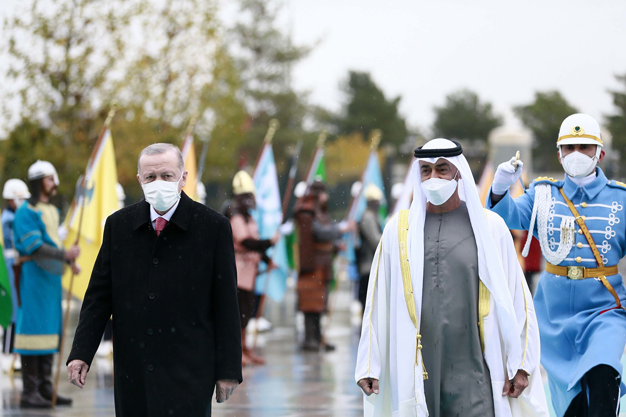 Körfez ülkelerinden BAE ile uzun aradan sonra başlayan diplomasi trafiği, bugün Veliaht Prens Muhammed bin Zayed Al Nahyan’ın Ankara ziyareti ile ileri bir aşamaya geçiyor. Cumhurbaşkanı Recep Tayyip Erdoğan, Cumhurbaşkanlığı Külliyesi'nde Abu Dabi Veliaht Prensi Şeyh Muhammed bin Zayed Al Nahyan'ı resmi törenle karşıladı.