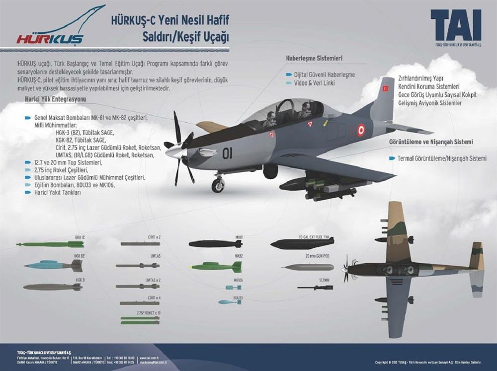 HÜRKUŞ-C, pilot eğitim ihtiyacının yanı sıra; hafif taarruz ve silahlı keşif görevlerinin, düşük maliyet ve yüksek hassasiyetle yapılabilmesi için geliştirilmektedir.