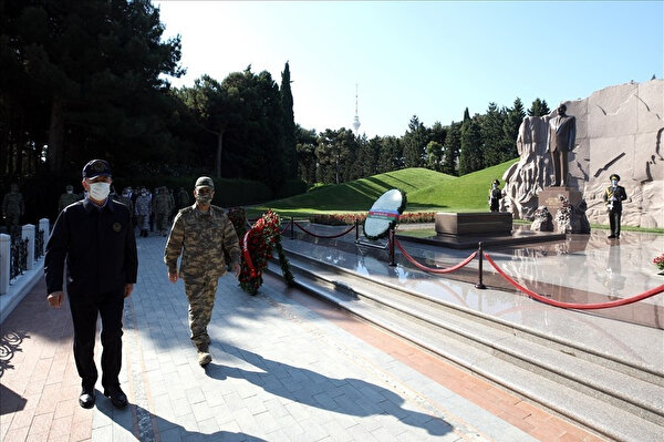 Azerbaycan’da bulunan Millî Savunma Bakanı Hulusi Akar ve TSK komuta kademesi, Azerbaycan’ın merhum Cumhurbaşkanı Haydar Aliyev’in kabrini ziyaret ederek çelenk bıraktı. Şeref Defteri’ni de imzalayan Bakan Akar, "Azerbaycanlı kardeşlerimizin gösterdiği kahramanlık ve fedakarlıklar, eEbediyen 'İki devlet bir millet' olduğumuzun, bundan sonra da kederde ve kıvançta daima bir ve beraber olacağımızın en açık göstergesidir. Omuz omuza savaştığınız ve yan yana şehadet şerbetini içtiğiniz Azerbaycanlı kardeşlerinizle ebedi istirahatgahınızda rahat uyuyunuz" ifadelerini kullandı.