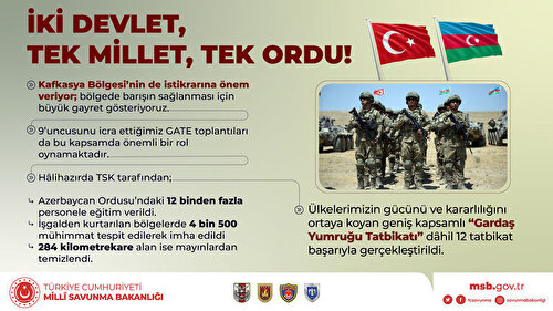 Ege ve Doğu Akdeniz'deki gelişmeleri de değerlendiren Akar, Türkiye'nin tüm komşularının sınırlarına, hakkına, hukukuna saygılı olduğunu, tüm ilişkilerinde barış, dostluk, diyalog, iyi komşuluk ve işbirliği içinde olduğunu vurguladı.