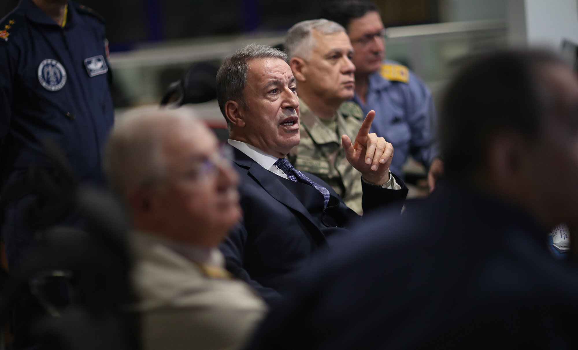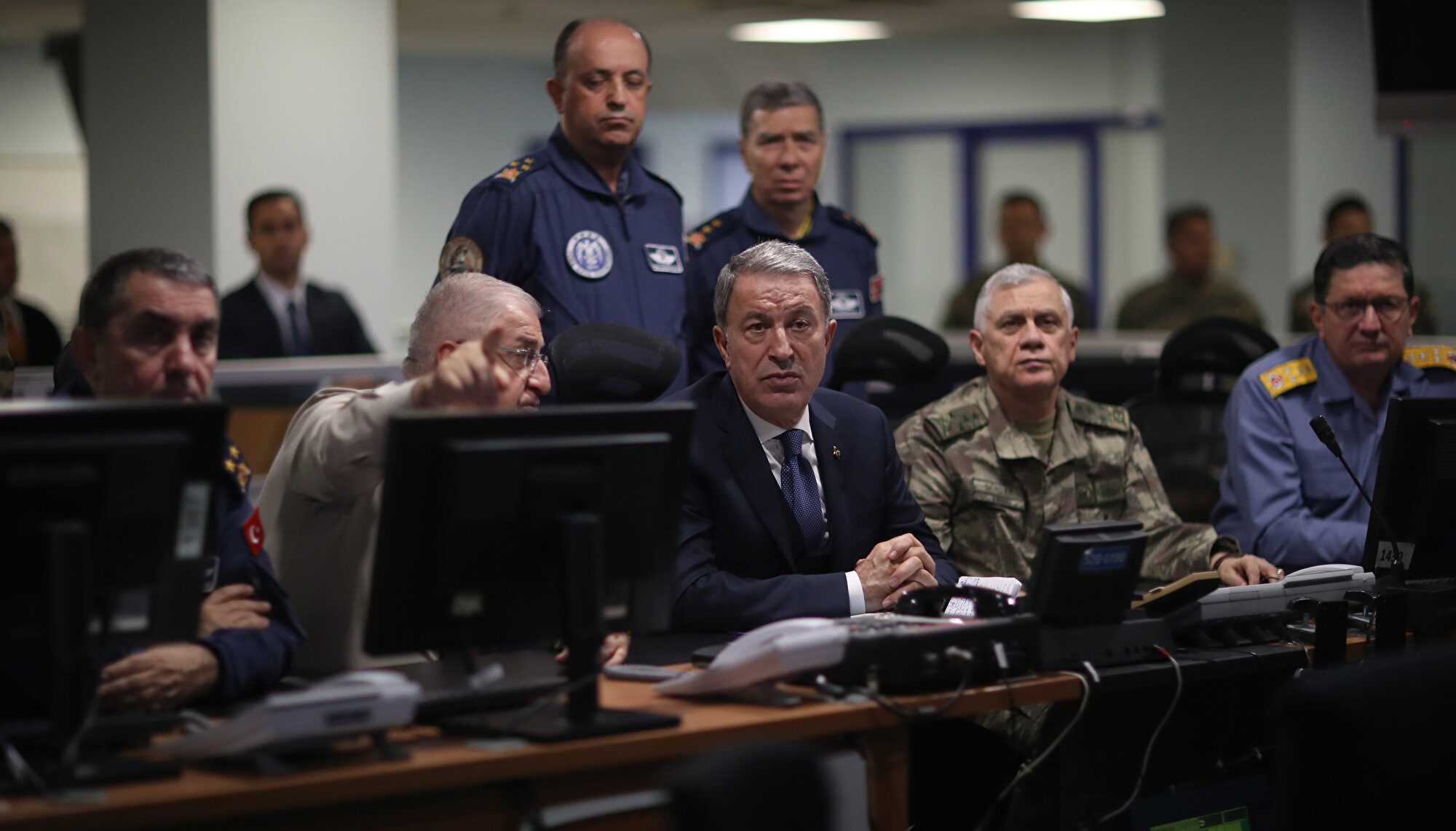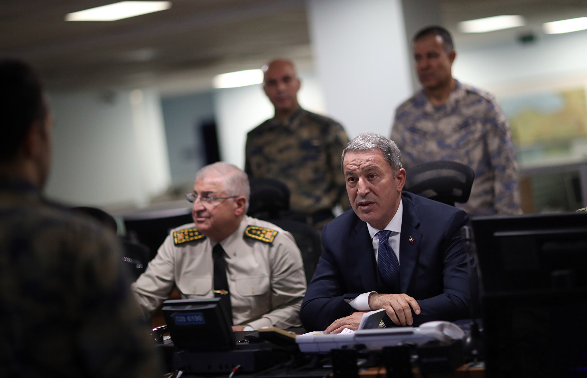 Milli Savunma Bakanı Hulusi Akar, beraberinde TSK'nın komuta kademesiyle Fırat'ın doğusundaki teröristlerin ana kaynağını oluşturan Sincar ve Karacak Dağı bölgelerine düzenlenen harekatını Hava Kuvvetleri Harekat Merkezi'nden takip etti.