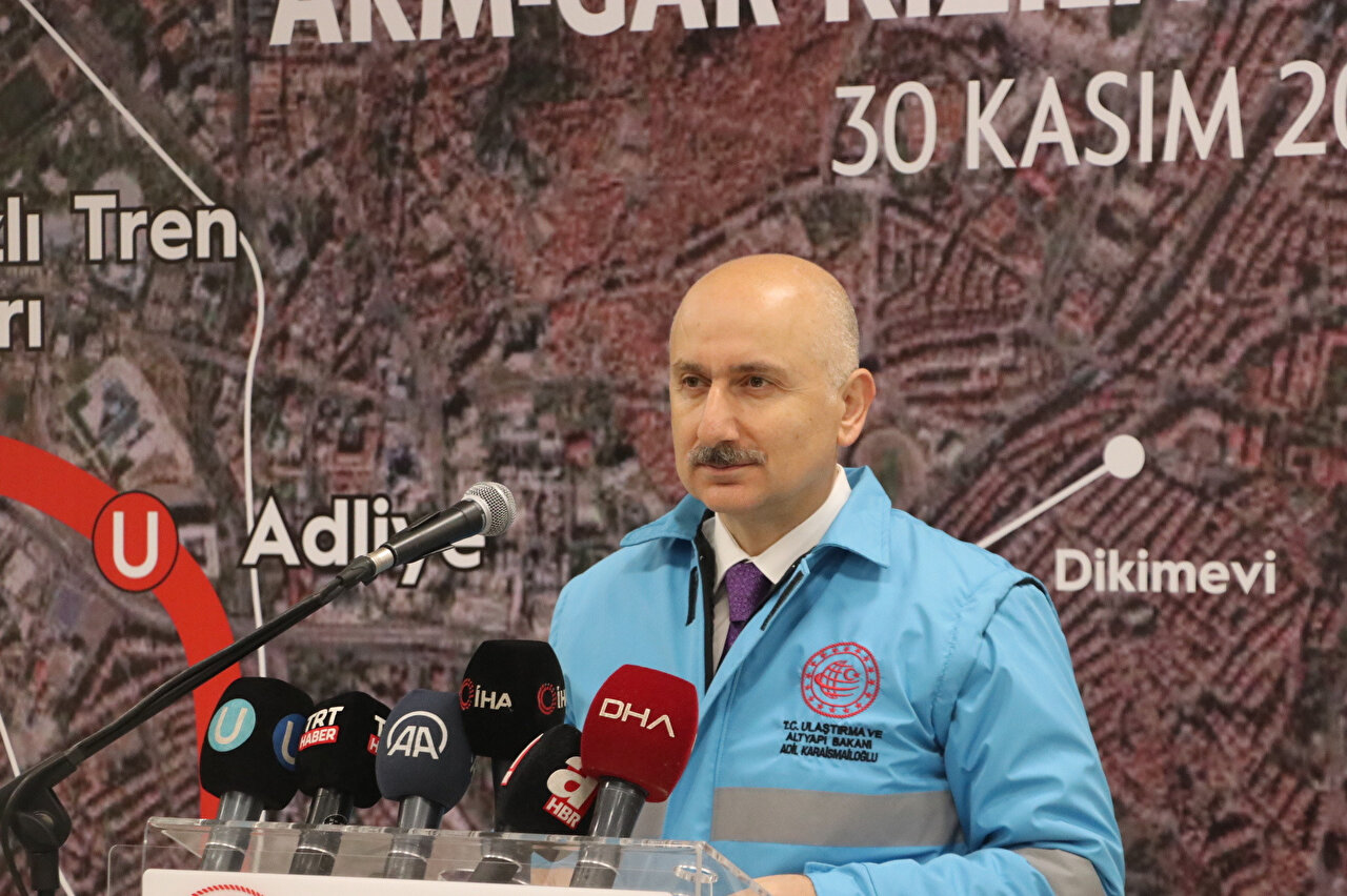 Karaismailoğlu, metro hattındaki incelemesinin ardından TCDD Taşımacılık A.Ş. tarafından düzenlenen 'Ulaşınca Başlar Fotoğraf Yarışması Ödül Töreni'ne' katıldı. Karaismailoğlu, bakanlığının bundan sonraki yatırımlarının demiryolu ağırlıklı olacağını söyleyerek, "Türkiye dünyadaki konjonktür ve konumu gereği artık büyük ölçekli yatırımlar yapabilecek bir konuma geldi. Demiryolu sektöründe çok önemli yatırımlarımız var. Türkiye genelinde tam 4 bin 500 kilometre demir yolu yatırımı şu anda devam ediyor. Halkalı’dan başlayıp Çerkezköy, Edirne, Kırıkkale, Avrupa hattında inşaatımız devam ediyor. Bursa’yı Ankara-İstanbul hattına bağlamak için çok hummalı bir çalışma var. Aynı şekilde Ankara-İzmir hattındaki bütün ihalelerimiz yaptık. Nisan ayı olarak kendimize hedef koyduk; Ankara-Sivas hattımızı da açacağız. Şu an 1400 kilometre hızlı tren işletmeciliği yapıyoruz. Bununla birlikte toplam demir yolu ağımız 13 bin 100 kilometre. İnşallah hedefimiz 2053’e geldiğimizde bu sayıyı 28 bin kilometreye çıkarmak." dedi.
