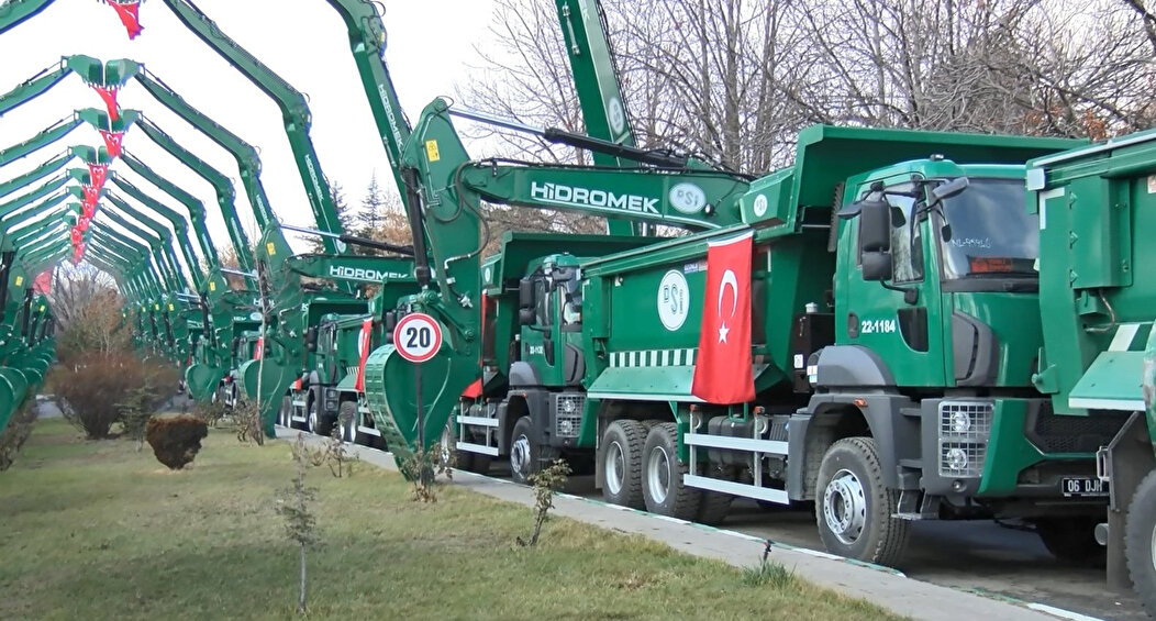 Tarım ve Orman Bakanı Vahit Kirişci, Devlet Su İşleri (DSİ) Genel Müdürlüğü'ne yeni alınan 160 iş makinesinin teslim törenine katıldı. 'Yeşil karıncalar' dediğimiz iş makinelerimizi; orman yangınları, deprem ve çığ gibi afetlerde destek amaçlı olarak da kullanıyoruz' diyen Bakan Kirişci; suyun önemine de dikkat çekti.