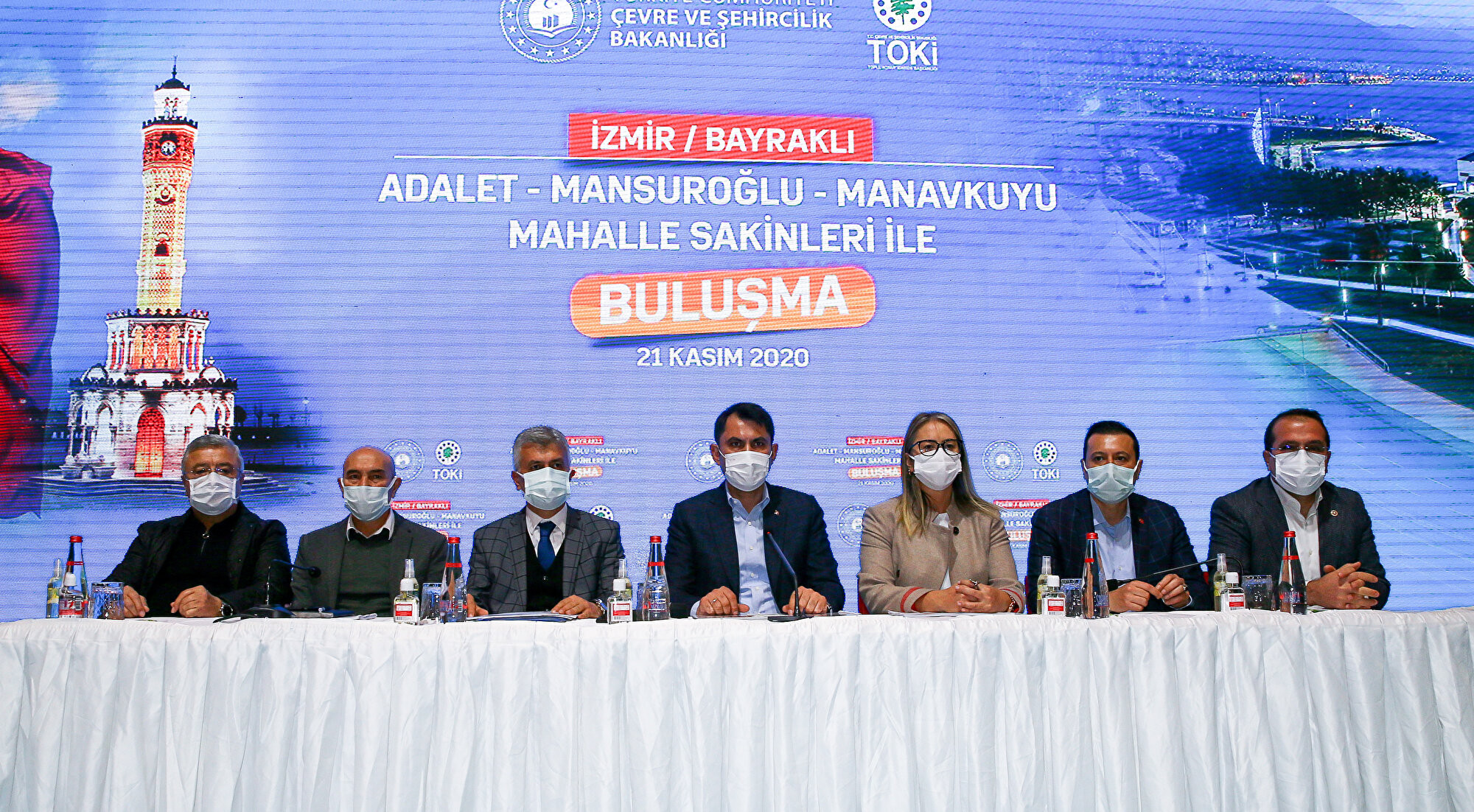 Çevre ve Şehircilik Bakanı Murat Kurum, 30 Ekim’de İzmir’de meydana gelen depremde Bayraklı ilçesinde en fazla hasarı alan Adalet, Mansuroğlu ve Manavkuyu sakinleriyle buluşma gerçekleştirmek üzere İzmir’e geldi. Bakan Murat Kurum, Bornova Kültür Merkezi’nde düzenlenen programda mahallelilerle bir araya geldi.