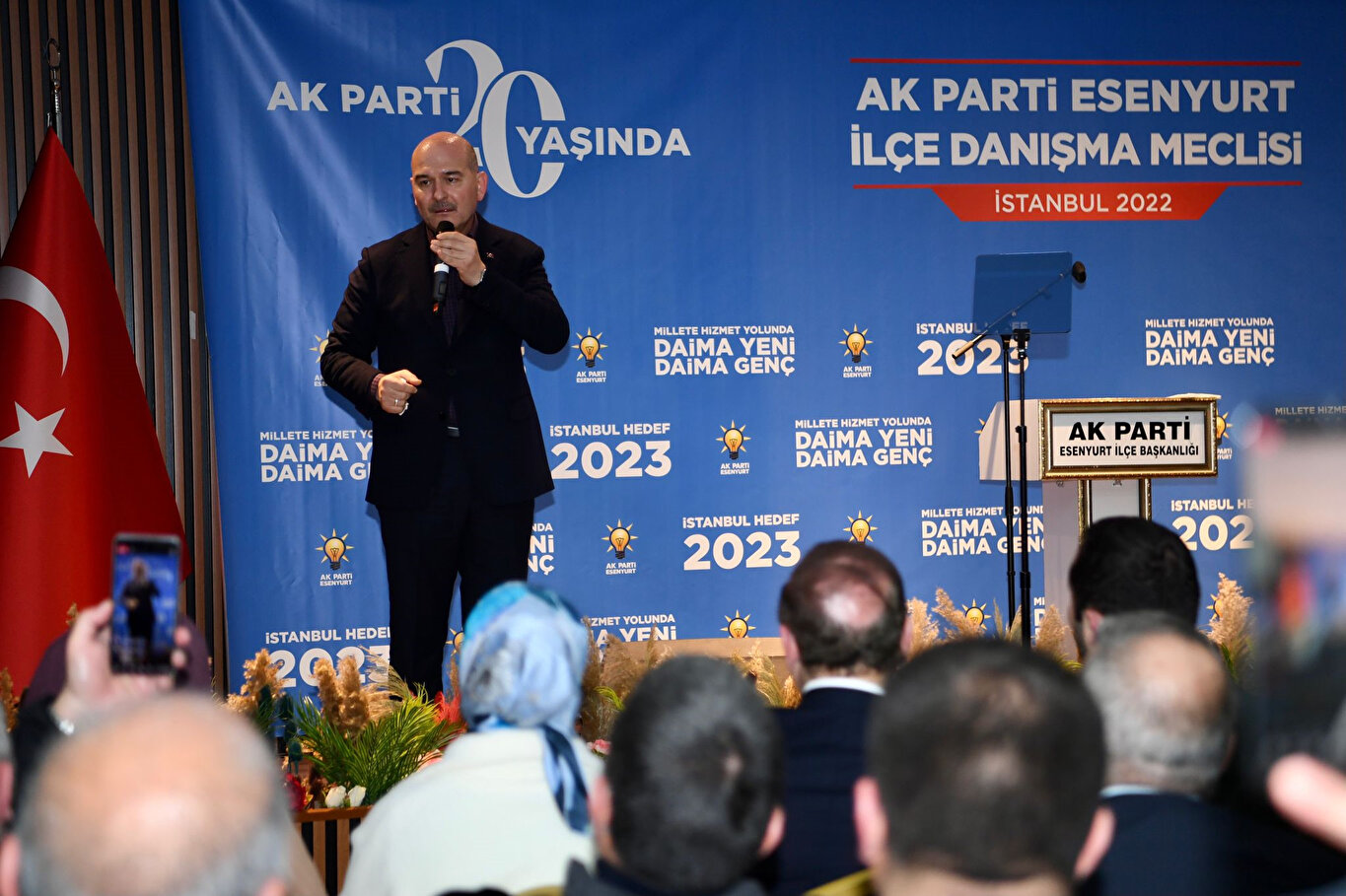 İçişleri Bakanı Süleyman Soylu, AK Parti Esenyurt İlçe Başkanlığı tarafından düzenlenen İlçe Danışma Meclisi programına katıldı. İlçe binasının konferans salonunda yapılan program saat 19.00'da başladı.