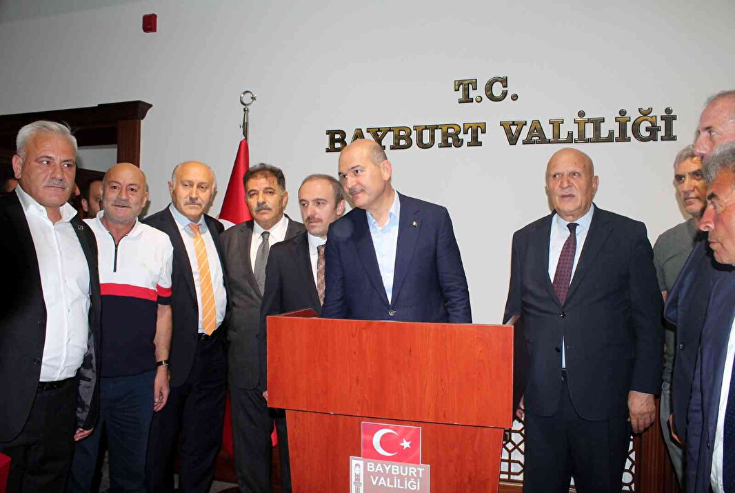 Çeşitli ziyaretlerde bulunmak için kente gelen Soylu, Bayburt Valiliği önünde kendisini ilgiyle karşılayan vatandaşlara hitap etti. Bakan Soylu, Bayburt'ta olmaktan onur duyduğunu dile getirerek, vatandaşlara Cumhurbaşkanı Erdoğan'ın selamlarını iletti.