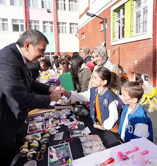 Okulun bahçesinde düzenlenen kermeste yiyecek, içecek ve takı stantlarını gezen Tekin, öğrencilerle ilgilendi, hatıra fotoğrafı çektirdi.
