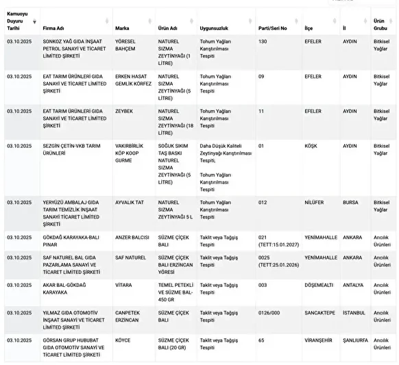 Sızma zeytinyağında tohum yağı karışımı, balda ise taklit ve tağşiş vakaları ortaya çıktı.