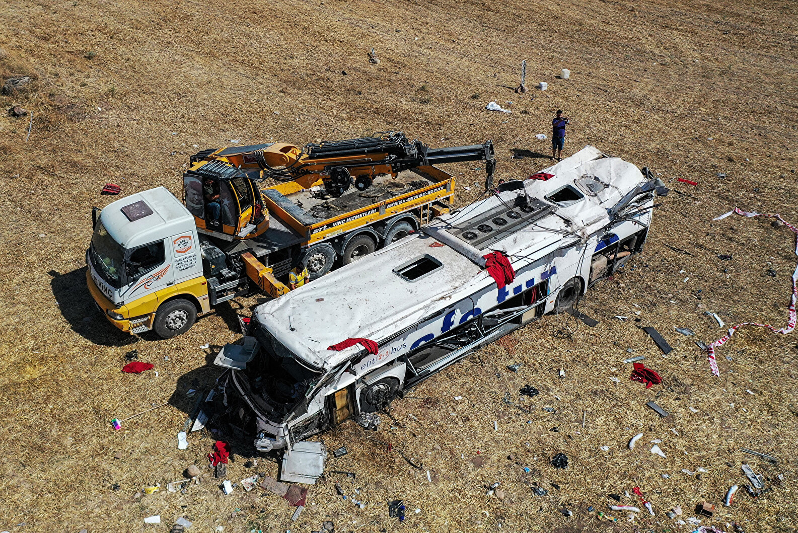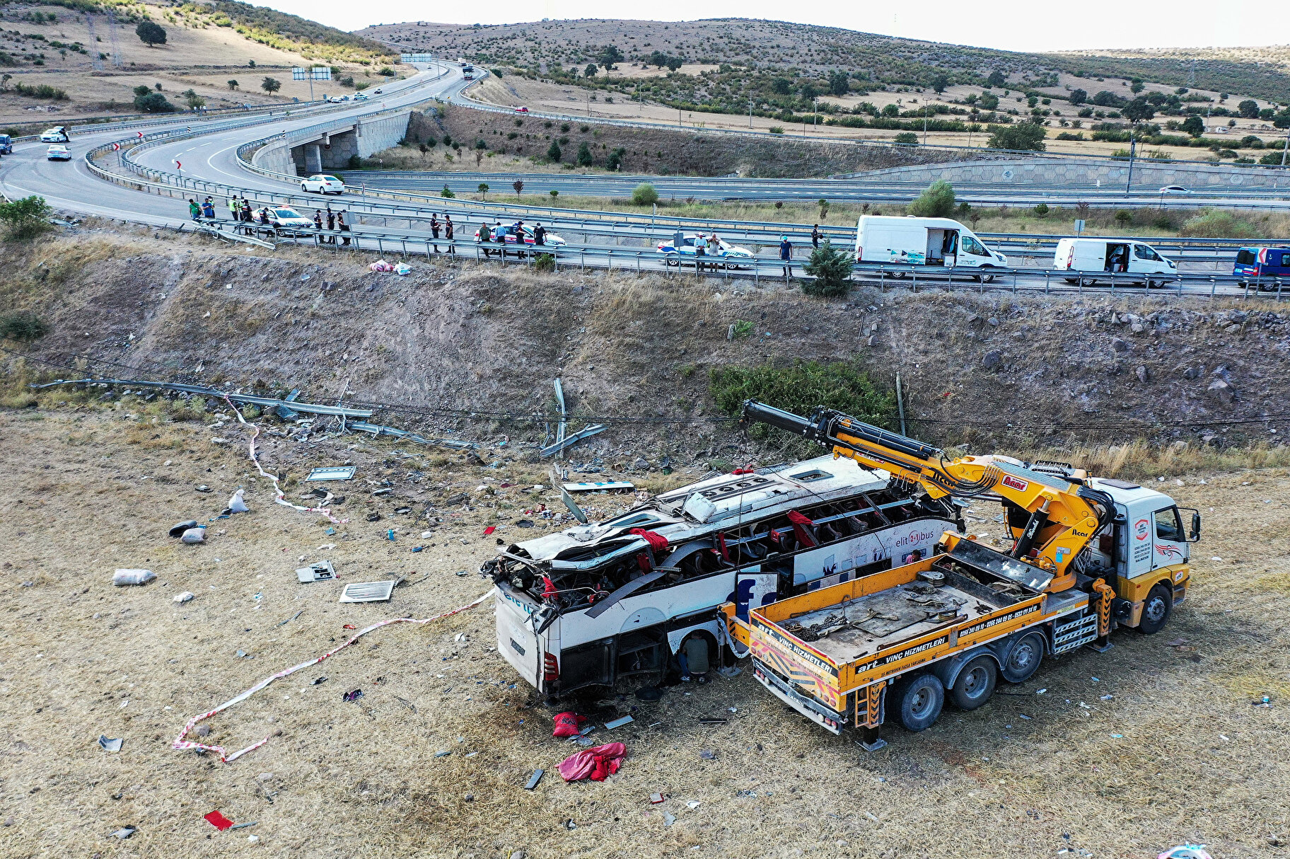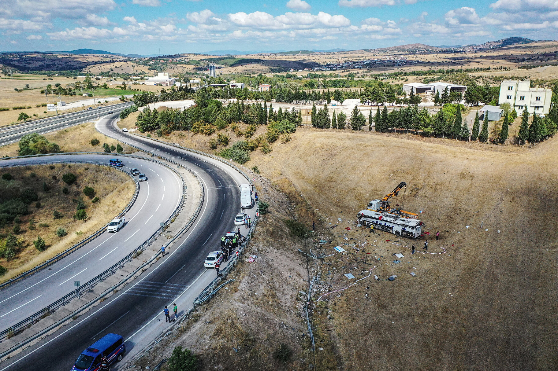 Kaza yerinde yapılan ilk incelemede yolcu otobüsünün 95 kilometre hızla viraja girdiği, yaklaşık 40 metrelik fren izi olduğu tespit edildi. Jandarmanın olay yeri incelemesinin ardından yolcu otobüsü vinç ile kaldırıldı. Yolcuların etrafa saçılan eşyaları da ekipler tarafından toplandı.