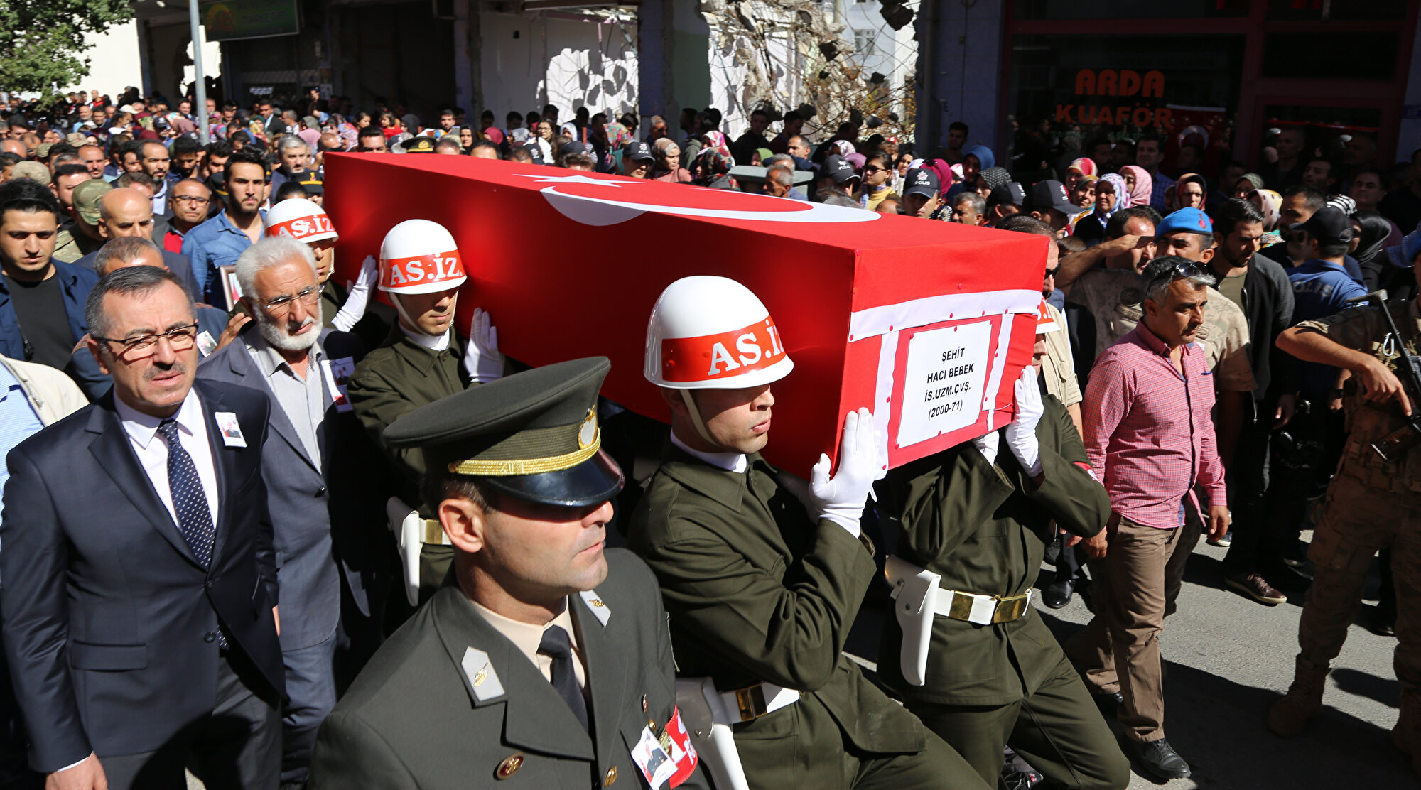 TSK'nın yürüttüğü Barış Pınarı Harekatı'nda şehit düşen İstihkam Uzman Çavuş Hacı Bebek, memleketi Kahramanmaraş'ta son yolculuğuna uğurlandı. Eşinin Türk bayrağına sarılı tabutuna sarılan Gülseren Bebek, "Düğünde ağlanmaz, bu bizim şerefimiz. Bizim için bu en büyük madalya. Bu bizim düğünümüz, al bayrağı da sana damatlık yaptık" dedi.