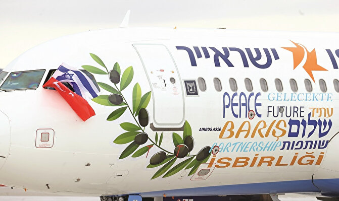 İsrail Cumhurbaşkanı’nı taşıyan uçak Türkiye mesajlarıyla süslendi. Uçağın üzerine İngilizce ve Türkçe olmak üzere “barış”, “iş birliği” ve “gelecek” kelimeleri yazıldı. Ayrıca uçağın arka kısmında ise İstanbul motiflerinden Ayasofya Camisi’ne ve Galata Kulesi ile İstanbul Boğazı’nın çizimine yer verildi.