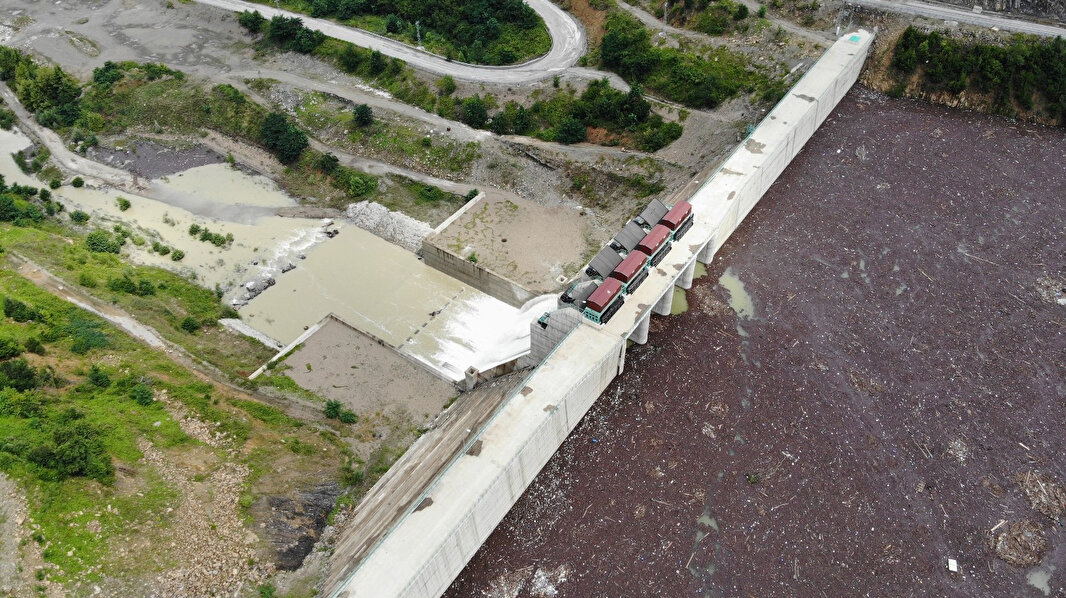 Bartın’da yaşanan sel felaketi sonrası dağlardan kopan ağaçlar Kirazlı Barajı’nın giriş kısmını doldurdu. Geniş alana yayılan odun parçaları drone ile havadan görüntülendi.