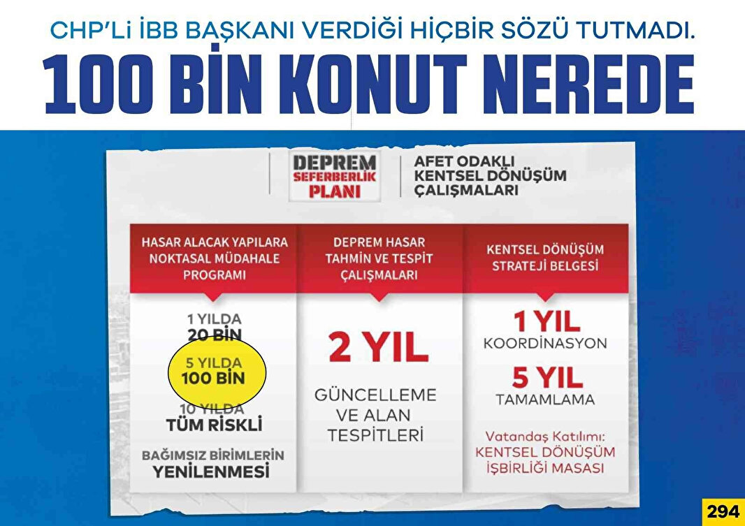 “İstanbul’un geleceği için yapılması gereken en acil işin kentsel dönüşüm olduğu ortadadır. Ancak İBB yönetimi bu konuda kulağının üstüne yatmaktadır. Bizim dönemimizde yapılan bütçe ile 2019 senesinde kentsel dönüşüme tam 1 milyar TL kaynak ayrılmıştı. Yani toplam bütçenin yüzde 4’ünü kentsel dönüşüme ayırmıştık. Peki siz ne yaptınız? 2020’de 256 milyon yani bütçenin yüzde 0,9’u, 2021’de 257 milyon yani bütçenin yüzde 0,8’i, 2022’de 492 milyon yani bütçenin yüzde 1’i. Üç senenin toplamı ise bizim bir senemiz kadar etmiyor. İşte aramızdaki fark bu. Reklama para var ama dönüşüme yok”.