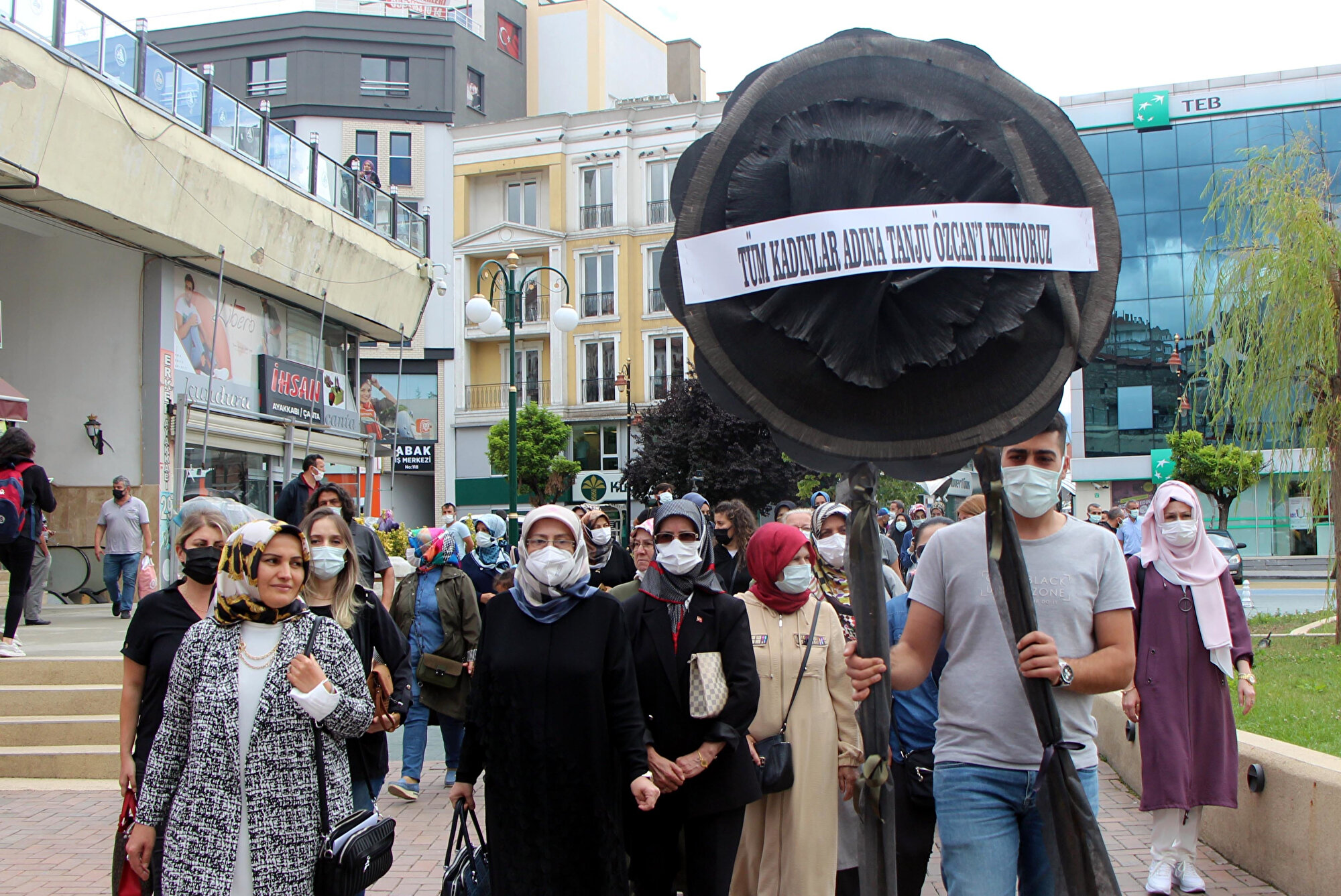 Bolu Belediye Başkanı Tanju Özcan, Youtube'dan yayınlanan bir programda, sağlık sorunu nedeniyle çocuk sahibi olamadığı için kendisinden yardım isteyen kadınla ilgili terbiye sınırlarını aşan imalı ifadeler kullanınca tepkilerin hedefi olmuştu. Özcan'a tepkilerin ardı arkası kesilmiyor. Bir grup kadın, belediye binası önüne gelerek ‘Tüm kadınlar adına Tanju Özcan'ı kınıyoruz’ yazılı siyah çelenk bıraktı.