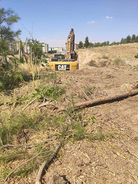 Batman Belediyesi Fen İşleri Müdürlüğü ekipleri, Çamlıtepe ile Belde Mahalleleri arasında başlatılan yol açma çalışması kapsamında, Yaşar Kemal Kent Ormanı'ndaki 170 yetişkin çam ağacını iş makinesiyle kırıp yerinden söktü.