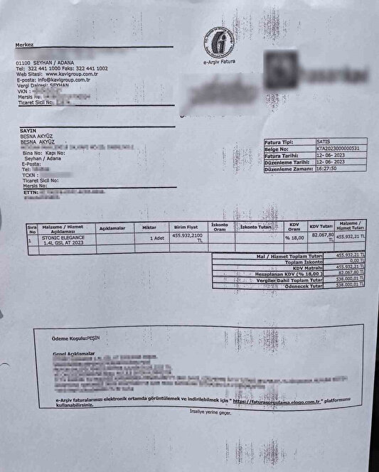 Ancak Akyüz, aracını aldıktan sonra faturanın 538 bin lira kesildiğini fark etti. Bayiyle görüşen adam,
