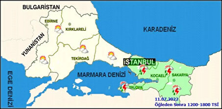 İstanbul: Hava sıcaklıkları en yüksek 29, en düşük ise 19 derece olacak. Parçalı ve çok bulutlu, bölgenin doğu kesimlerinin (İstanbul Anadolu Yakası, Kocaeli, Sakarya ve Yalova) aralıklı sağanak ve gök gürültülü sağanak yağışlı geçeceği tahmin ediliyor. : Kuzey ve kuzeydoğu (Poyraz) hafif, ara sıra orta kuvvette ve yağış alan yerlerde yağış anında yer yer kuvvetlice esmesi bekleniyor.