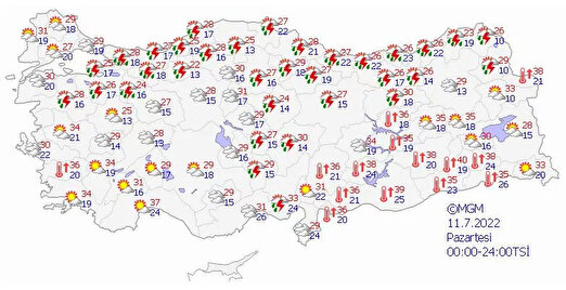 Meteoroloji Genel Müdürlüğü 11 Temmuz 2022 hava durumu raporunda Doğu Karadeniz'deki 6 ile sarı kod uyarısıyla sel ve su baskını uyarısı yaptı.