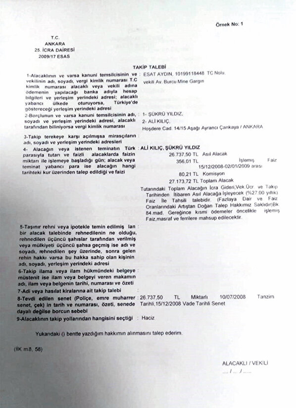 Ancak gerçek hiç de öyle çıkmadı. 2014 yılı öncesinde Ali Kılıç hakkında 2 ayrı icra kararı olduğu belirlendi. Kılıç hakkındaki ilk işlem Ankara 25. İcra Müdürlüğü tarafından yapıldı. Kılıç, 26 bin liralık asıl borcunu ödeyemediği için borç miktarı faiziyle birlikte 106 bin lira 67 kuruşa kadar çıktı. Hakkında dava açılan Kılıç icralık oldu; hacizle karşı karşıya kalınca 106 bin lirayı temin ederek borcunu kapattı ve dosya takipsizlikle sonuçlandı. Borçlarıyla başı dertte olan Kılıç hakkındaki ikinci dosya ise Erzincan İcra Müdürlüğü’nde açıldı. Kılıç bu borcunu da belediye başkanı seçildikten sonra kapatabildi.