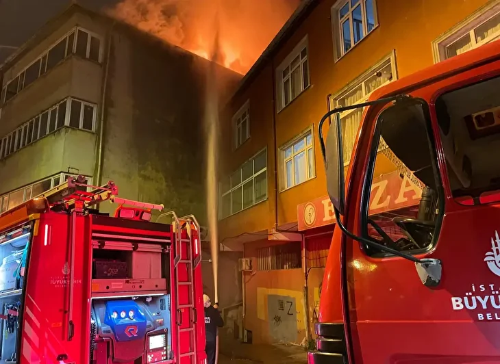 Beyoğlu'nda Piyalepaşa Mahallesi Sağlık Ocağı Sokak'ta tekstil atölyesi olarak kullanılan 5 katlı binanın çatısında henüz bilinmeyen nedenle yangın çıktı.
