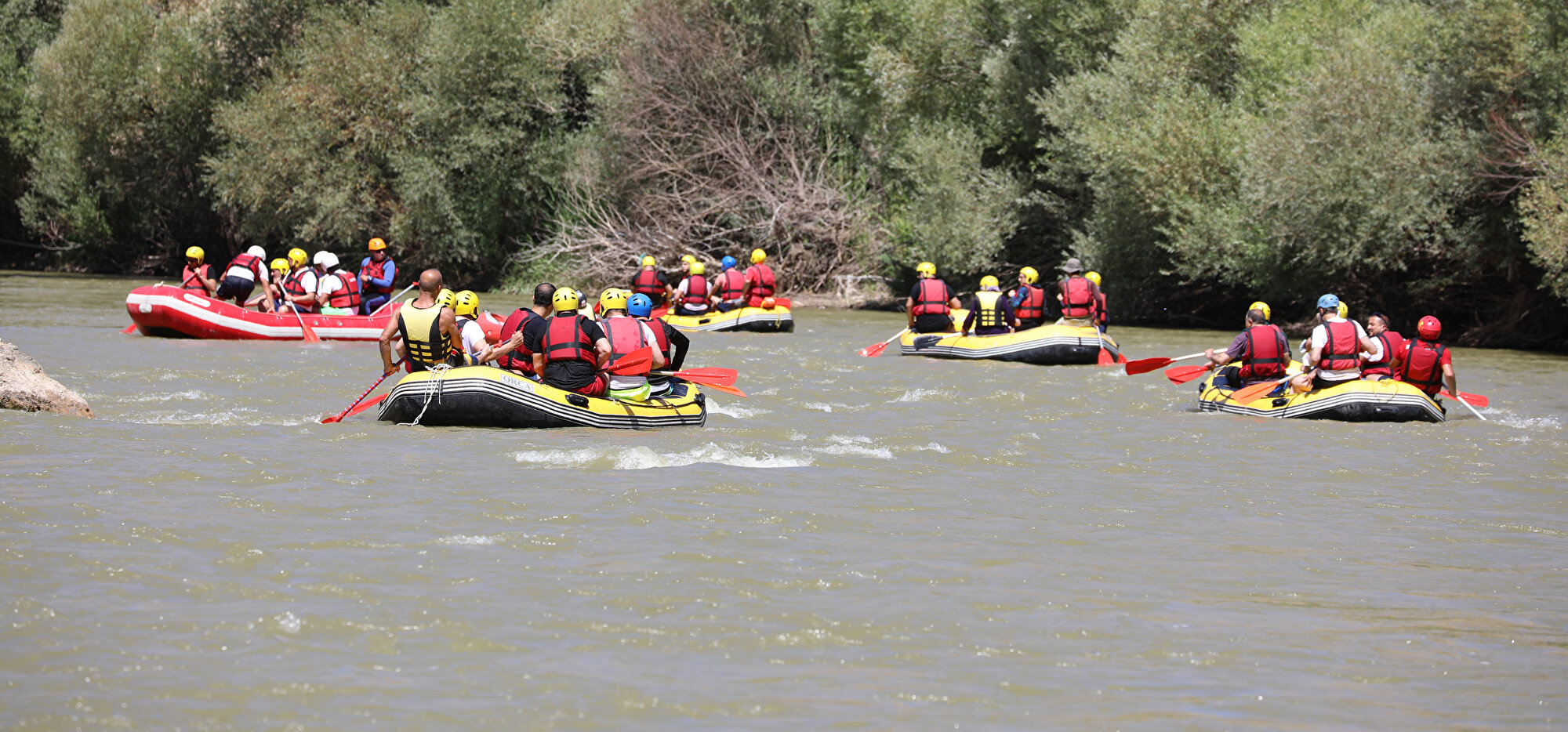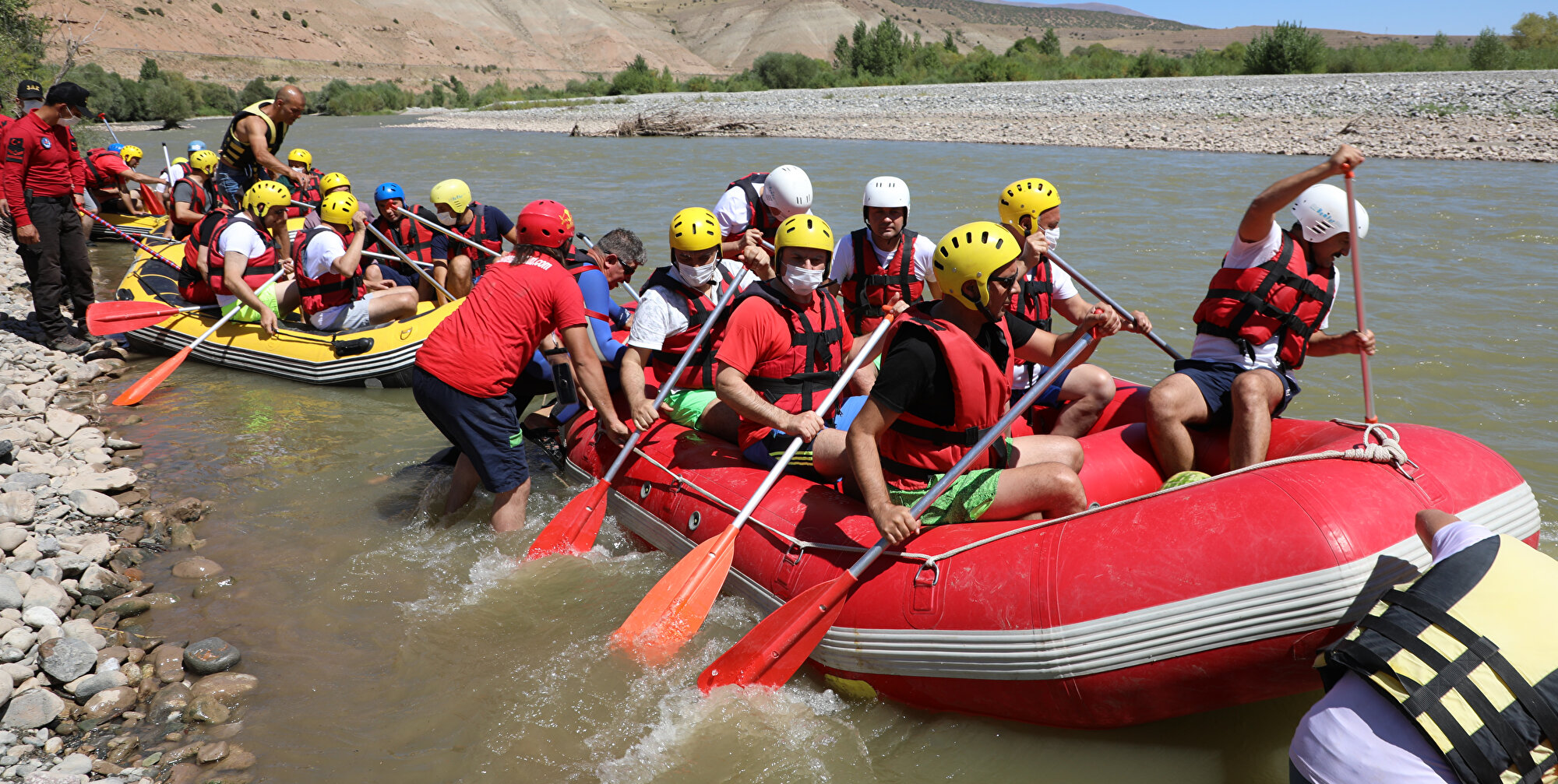 - Kentte bulunan rafting kulüplerinden oluşan 6 bottaki sporcular da Yıldırım ve beraberindekilere eşlik etti.