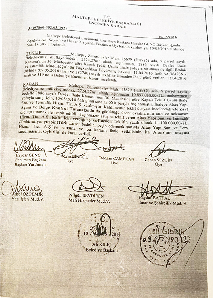 0 Mayıs 2016’da belediye meclisi tarafından 15679 ada 5 parsel 2724 metrekare arazi 11 milyon 100 bin lira bedelle alacağına karşılık Altaş’a satıldı.